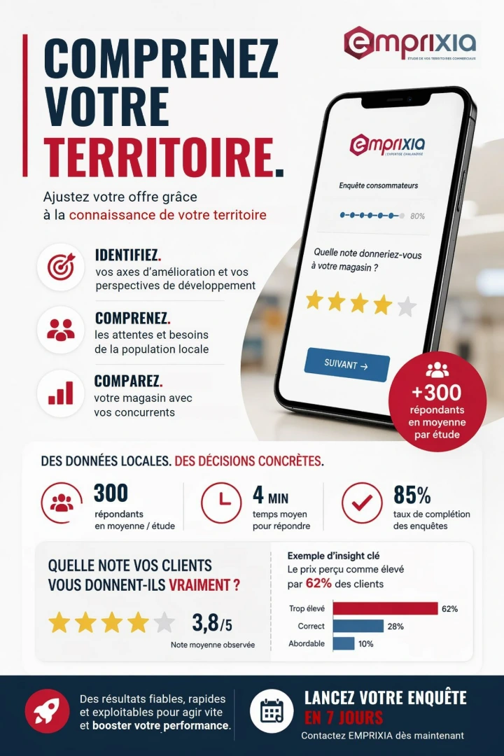 ChezEMPRIXIA, nous interrogeons ceux qui font réellement votre marché : vos clients… mais aussi ceux que vous ne captez pas (encore).